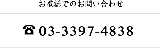 【お電話:03-3397-4838】もしくは【お問い合わせページ】のメールフォームからご相談内容をお問い合わせください。